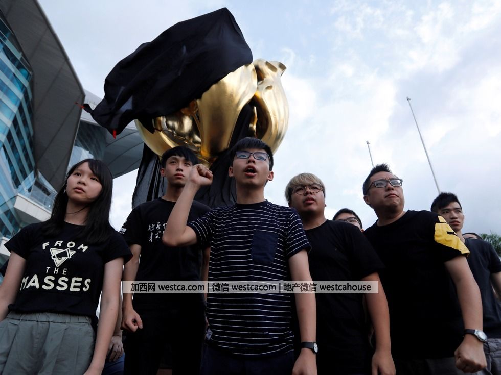 黃之鋒(中)率“港獨”分子突襲紫荊廣場(圖源:Reuters)
