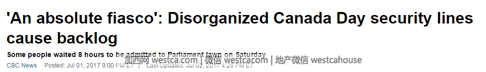 和多倫多湖濱的大黃鴨壹樣,渥太華國會山也是150周年慶的重頭戲。但是不少民眾卻表示,現場大排長龍,秩序混亂,自己的壹天基本上算是毀了。