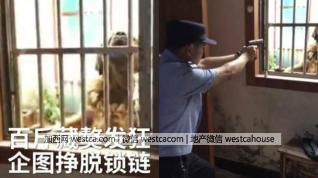 6月開始,當地警方就接連獲報,司徒鎮全州某超市後院內飼養的壹條藏獒發狂吼叫、企圖掙脫鎖鏈,希望警方前往處理。22日上午,員警趕到現場,壹走進屋子就聽到壹陣吠叫聲,黝黑的藏獒在院子透過窗,不停對員警吼叫,並直撲窗戶。附近居民指出,這只50公斤重的巨大藏獒主人日前過世,從此以後,藏獒拒絕進食、情緒變得躁動,企圖掙脫鎖鏈,無法控制。