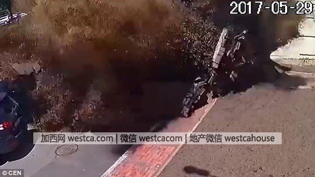 事發於周壹下午。通過視頻可見,當時現場有數輛停泊的汽車及壹名女子路過,突然地面隆起,瞬即爆開,飛出的泥沙蓋過附近的汽車,直飛閉路電視鏡頭。爆開的瞬間可見女子受到驚嚇,所幸未受傷。