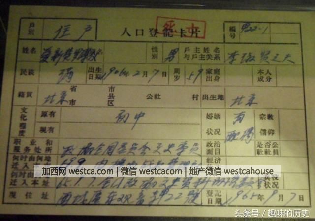 自從1958年開始,中國實行戶口登記條例以來,中國人都有壹個戶口本,填寫的內容大多相似,不足為奇,但是有壹個人卻例外,他就是末代皇帝溥儀。