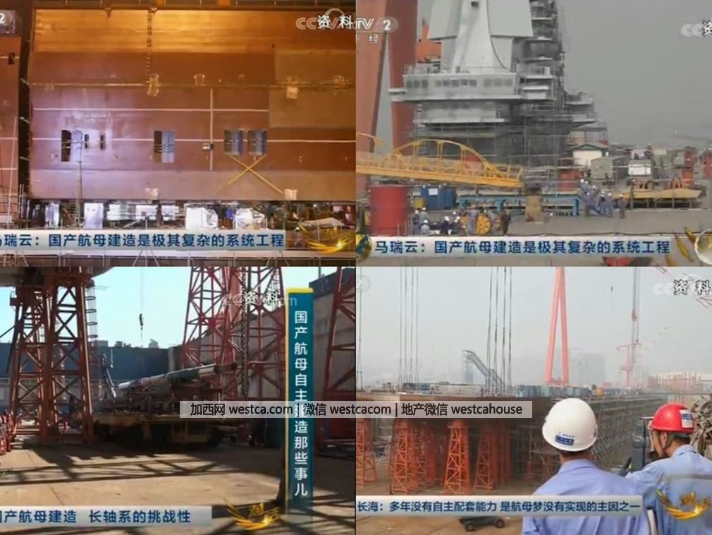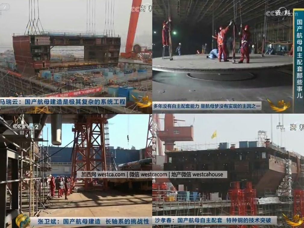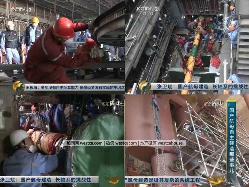 北京時間8月20日晚,大陸官媒央視的壹檔節目罕見公開中國首艘國產航母建造過程,其中,機庫內轉盤安裝、軸系安裝等內部建造畫面更是首次曝光,引發外界關注。中船重工官員宣稱,中國首艘國產航母的自主配套設備已“完全國產化”。(圖源:央視截圖)