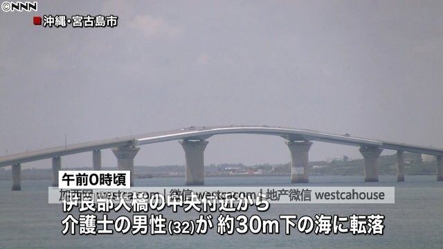 死者是壹名32歲的青年,職業是護士。4日凌晨,男子與朋友喝了些酒,女友開車載他回家,途經伊良部大橋時,他要求女友將車停下,忽然就在橋的中間求婚。