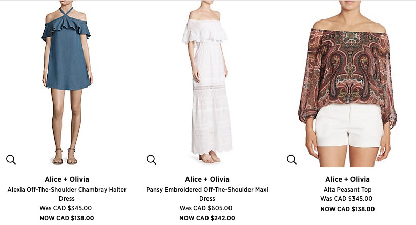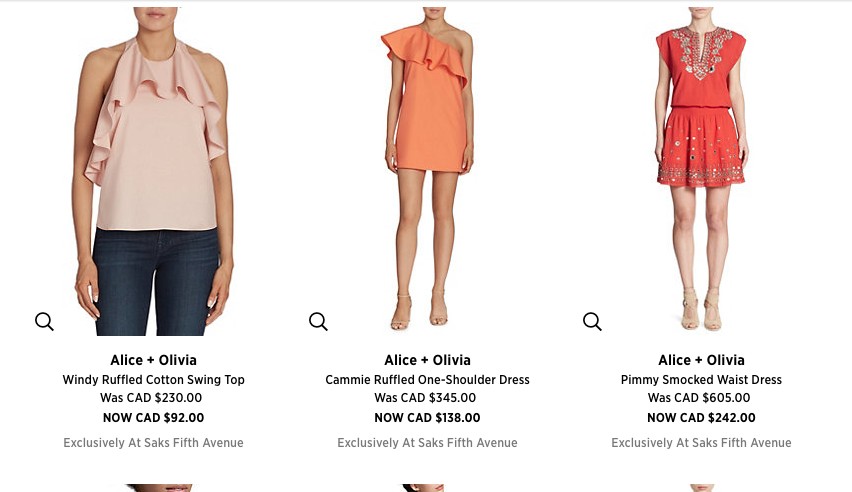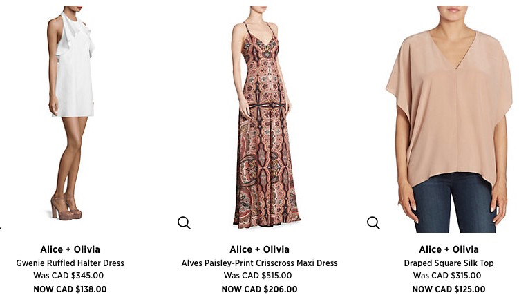 Saks Fifth Avenue Canada 現有 Alice + Olivia 多款美衣優惠, 低至2.5折