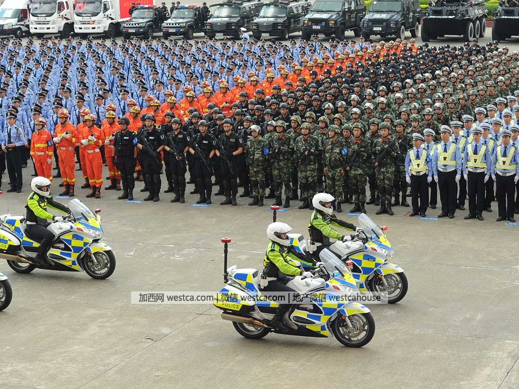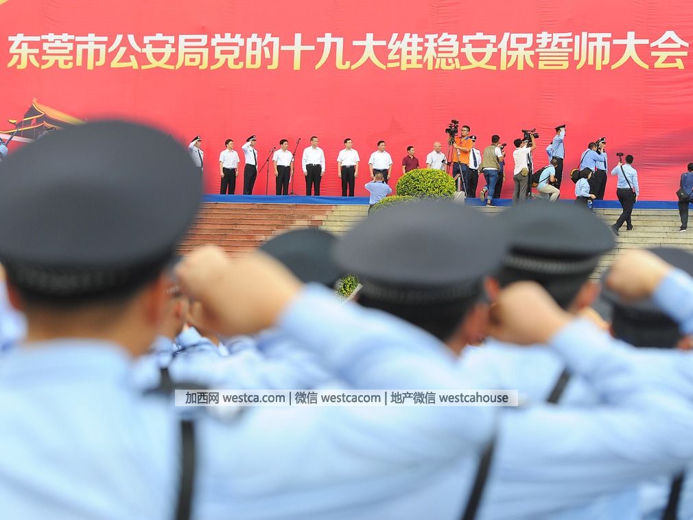 中國共產黨第拾九次全國代表大會將於2017年10月18日在北京召開,喜訊傳來,全國各地歡欣鼓舞,倍感振奮。2017年9月26日,廣東東莞南城,東莞市公安局舉行了中共拾九大維穩安保誓師大會。(圖源:VCG)