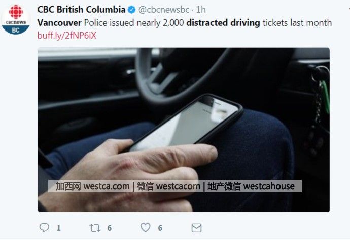在上個月溫哥華警方總共發出將近2000張分心駕駛的罰單,具體數目是1969。這其中最著名的就是壹名美國游客拿著手機開車,在8分鍾內經過6個路口時兩度被截停而收到兩張罰單。