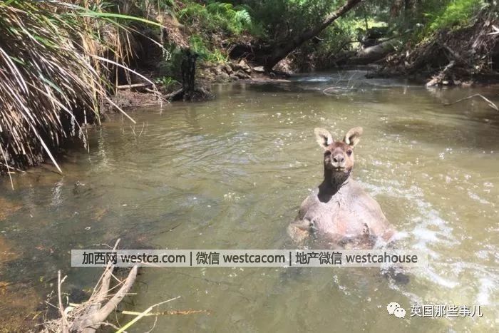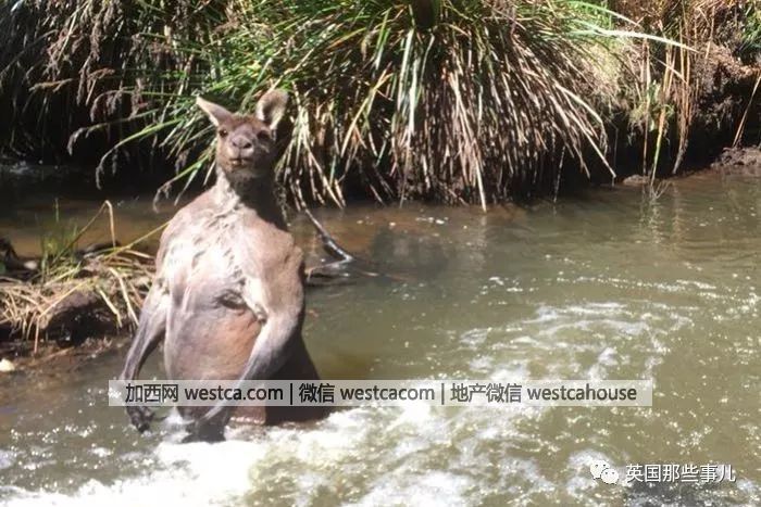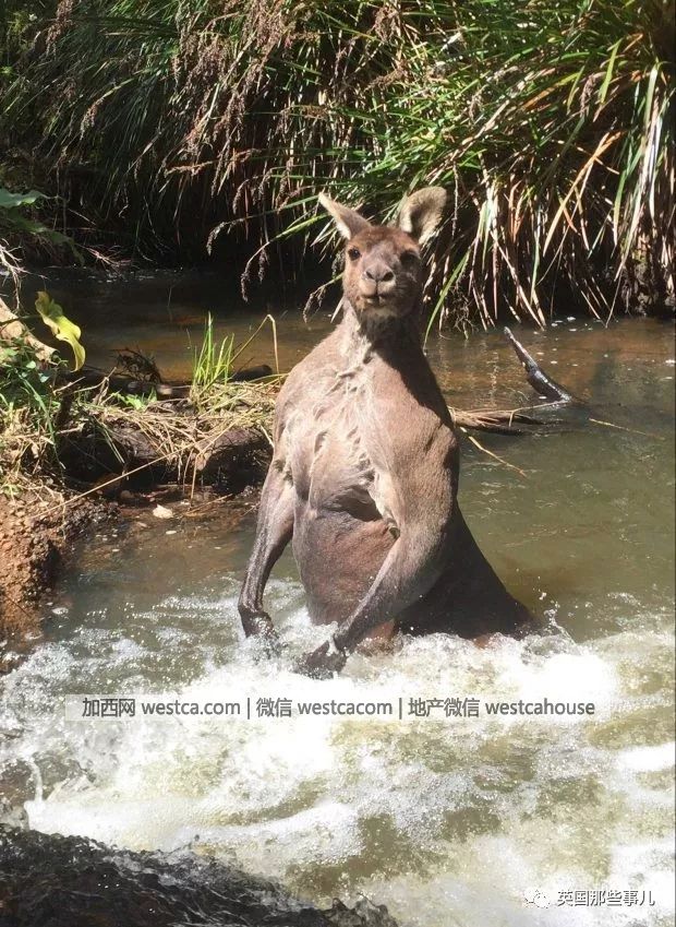野外突然看到只兩米高的肌肉袋鼠在洗澡??還能怎樣啊!! 當場跑路啊!!
