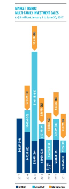 盡管供應上受到高度限制,多戶投資(Multi-family investment)從壹年前的6.29億元增長了146%,達到15億元。
