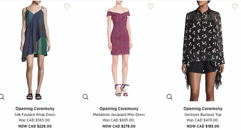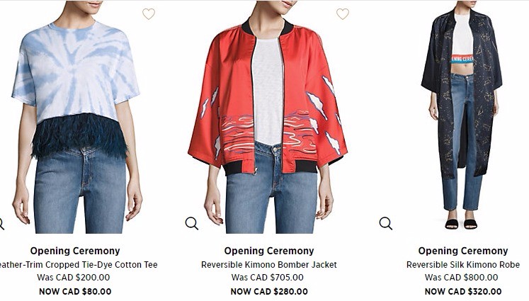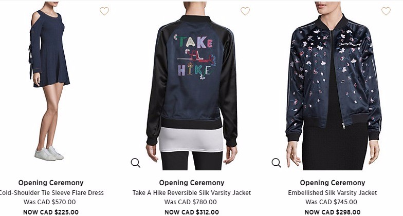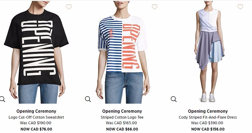 Saks Fifth Avenue Canada 現有 潮牌 Opening Ceremony 換季清倉,經典logo款也有哦 低至4折起。