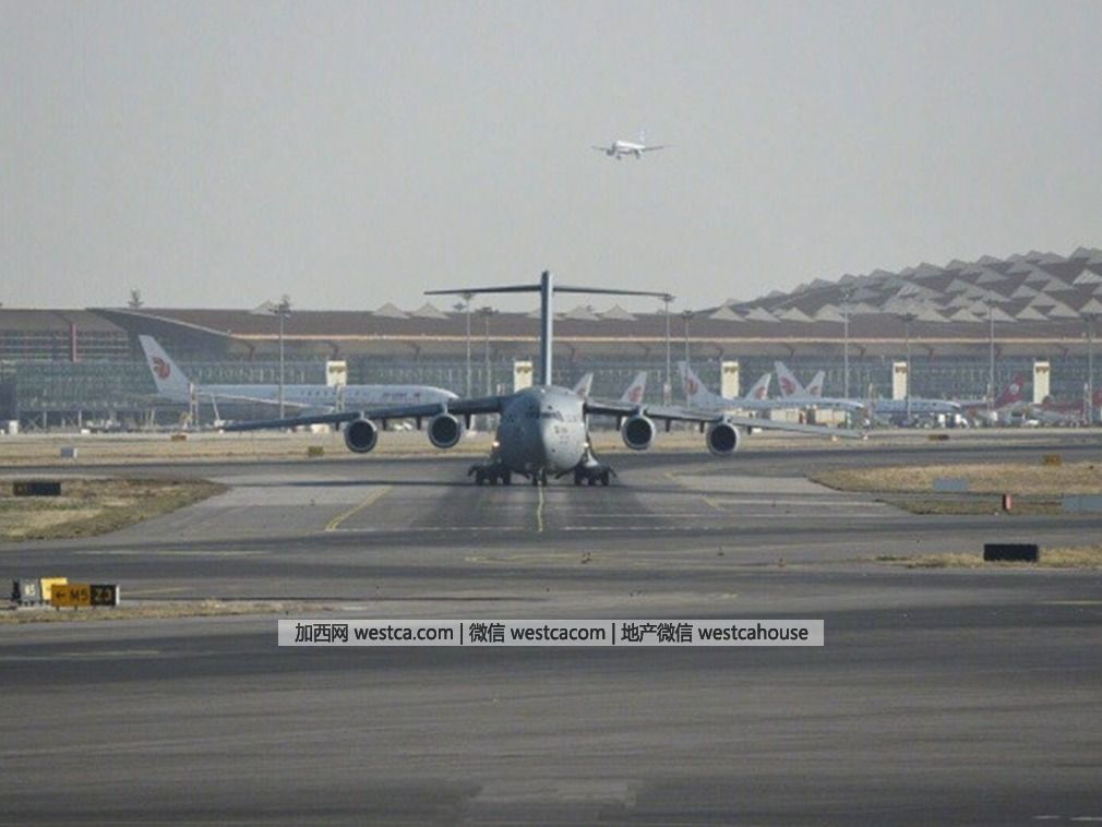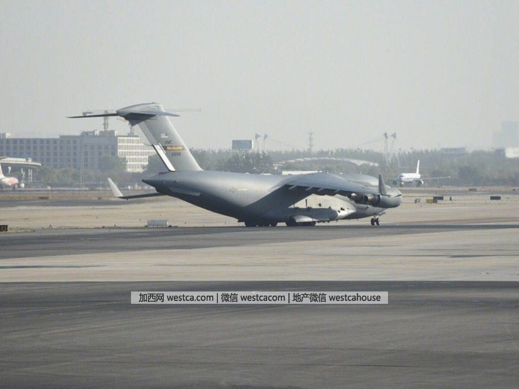 對於美國軍方C-17戰略運輸機為何到訪北京,外界猜測這可能是為美國總統特朗普(Donald Trump)首次訪華之旅打前站,運送相關物品或設備。(圖源:@航空物語)