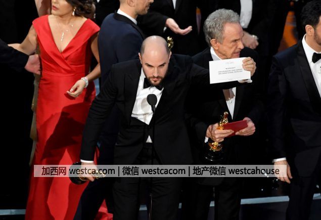 在今年奧斯卡頒獎典禮上,頒獎嘉賓把原屬於《月光男孩》的最佳影片獎頒給了《愛樂之城》。這個錯誤在後者劇組人員已經登台,正在手捧小金人發表獲獎感言時被糾正過來。當時場面混亂,堪稱奧斯卡史上最尷尬時刻。