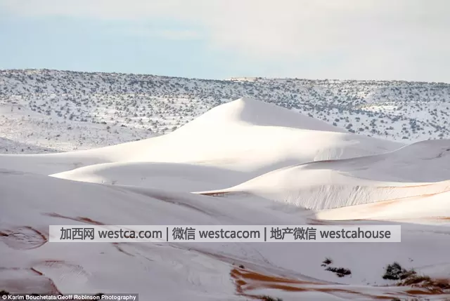星期天凌晨, 撒哈拉沙漠开始下起了漫天大雪。然后到了星期二,雪停了。