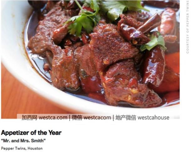 夫妻肺片已經成為了美國人的心頭愛。美國頂尖美食品鑒大師Brett Martin評出了“美國2017餐飲排行榜”,被選為“年度開胃菜”的是中國的夫妻肺片,英文名Mr. and Mrs. Smith。