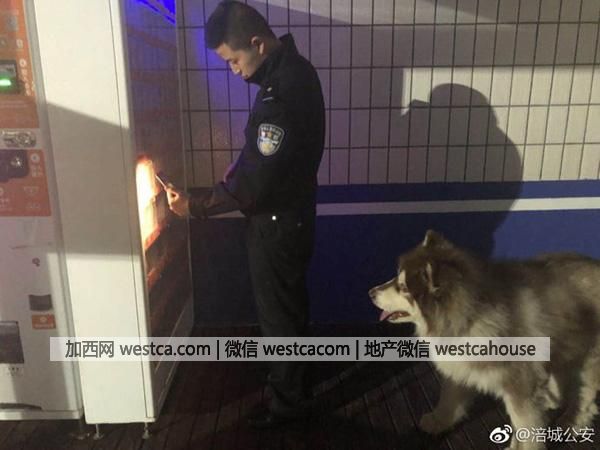 3月3日撿到的阿拉斯加和民警。圖片來源:@涪城公安12日22時許,壹只阿拉斯加在工區派出所門口打轉,路人將其送到派出所內。因為沒有尋找到狗主人,民警就將阿拉斯加安置在值班室。在值班室吃起方便面的民警發現阿拉斯加壹直盯著自己,便猜想它肚子餓,去自動販賣機內給它買面包,“當天晚上吃了6個左右吧,反正自動販賣機裡面的面包都被吃光了。”