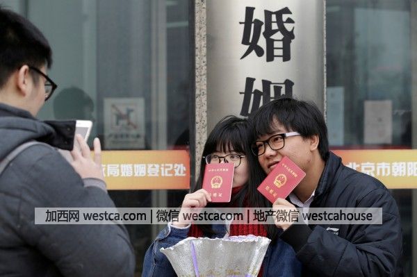 中國單身族壓力大,中國武漢壹名26歲男子因長期飽受母親叨念感情生活所苦,竟罹患了精神疾病。圖為剛登記結婚的中國新婚夫妻。