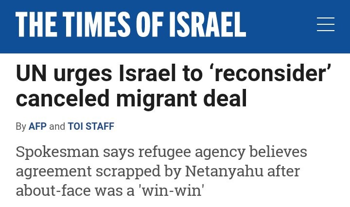 Israel cancels deal with UN to resettle African migrantshttps://t.co/9r2w7nWDMm pic.twitter.com/yE69rfyVpw