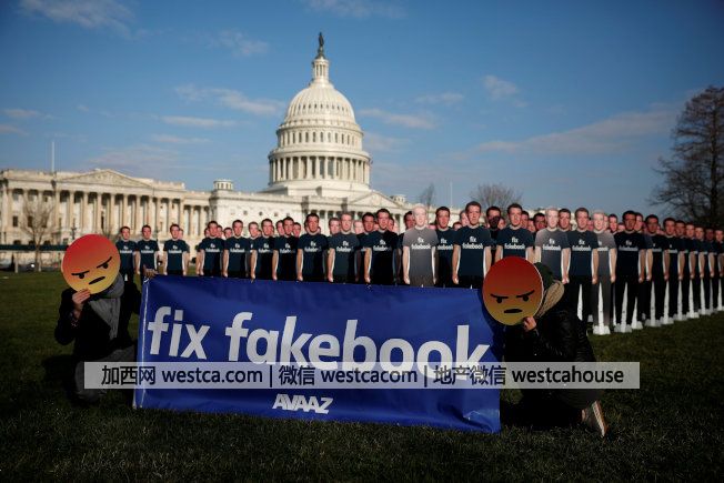 臉書執行長祖克柏11日赴美國國會作證時,國會外有數拾個以祖克柏全身像做成的看板,且以“修理假書”諷刺臉書傳播假新聞,要求改善。路透