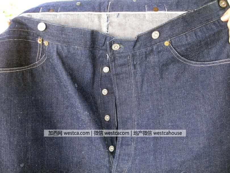 這件有牛仔是美國著名牛仔品牌於125年前在舊金山出售,這條牛仔褲的尺寸極大,腰圍44寸。這條牛仔還透露出百年前人們的生活習慣,由於當時人們習慣用吊帶來固定牛仔褲,所有沒有現代人熟悉的皮帶孔。