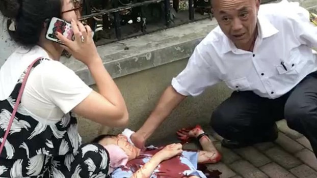 這位媽媽也被砍傷,仍然拼命的摁住流血不止的兒子。