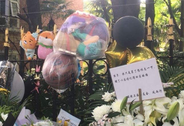 堆疊的花束、玩具蔓延在事發路段