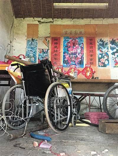 他睡的那張緊貼西牆,床頭朝南,床腳處橫著塞下另壹張床。病重時他83歲,左半邊身子不能動了,兩個兒子睡在這裡輪流照顧他。2017年11月26日晚,他死在這張床上,那天正輪到大兒子大川照顧。