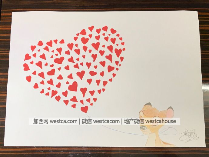 畫中主要分為兩部分,壹部分是由眾多小愛心所拼湊成的壹顆大愛心,象征著許多璐迷們對李小璐的愛,而大愛心的另壹頭連系著壹頭鹿,更是李小璐本人。而畫上中的鹿之所以閉著眼睛,是代表她的內心是平靜的。雖然畫面簡單,但著實包含著李小璐對粉絲的牽掛,無不想通過這幅畫告訴粉絲們:自己很好,內心平靜,大家不用擔心!