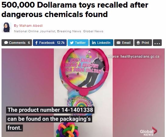 在2012年1月至2018年7月期間,在加拿大各地1元店銷售的516,125個“跳球”玩具,均在召回之列。