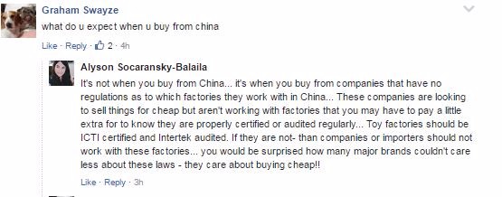 網友Swayze在Global News上留言稱,“你買來自中國產的東西,你能指望啥?”