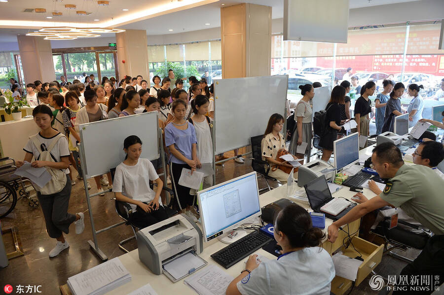 其中,参加正式体检的,有80%为在校大学生和大学毕业生,其余20%也是今年高中刚毕业,已经拿到了录取通知书的预备大学生。