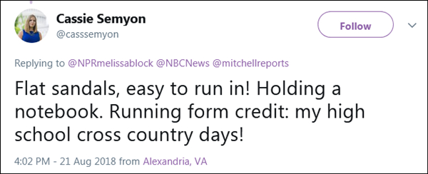 美國國家公共電台(NPR)記者布洛克(Melissa Block)將短短伍秒的鏡頭傳上社交網站,收到88萬點擊量和近兩萬個“贊”。
