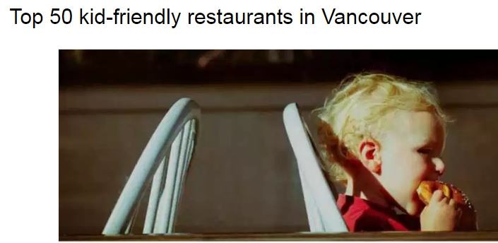 而溫哥華就有許多高檔餐廳進入OpenTable's的加拿大兒童友好餐廳前伍拾名。