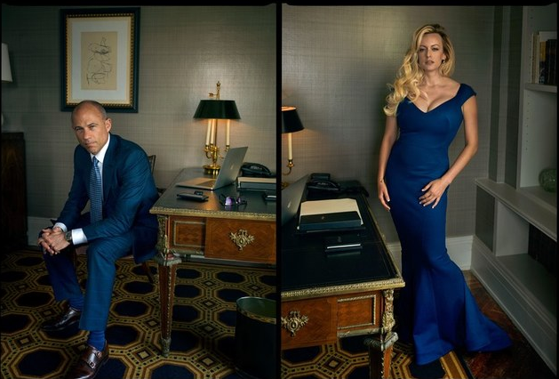 成人片女星"風暴丹妮爾斯"與律師阿韋納蒂接受時尚雜志《Vogue》訪問。翻攝《Vogue》