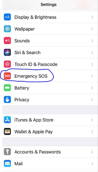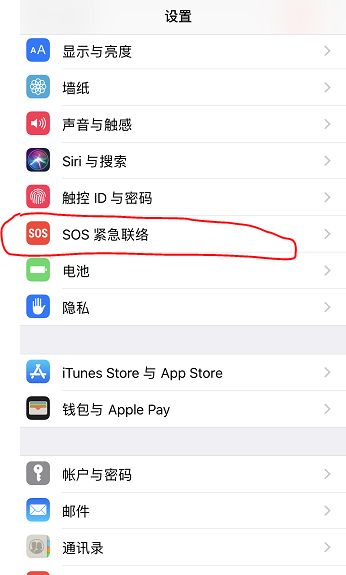 1.點開“設置”,找到“SOS緊急聯絡”(中英文版本示例各壹)