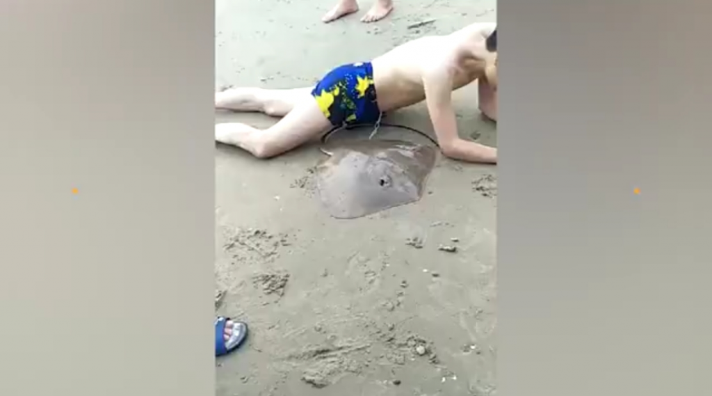 年輕男子海裡游泳,不幸被“魔鬼魚”刺傷下體
