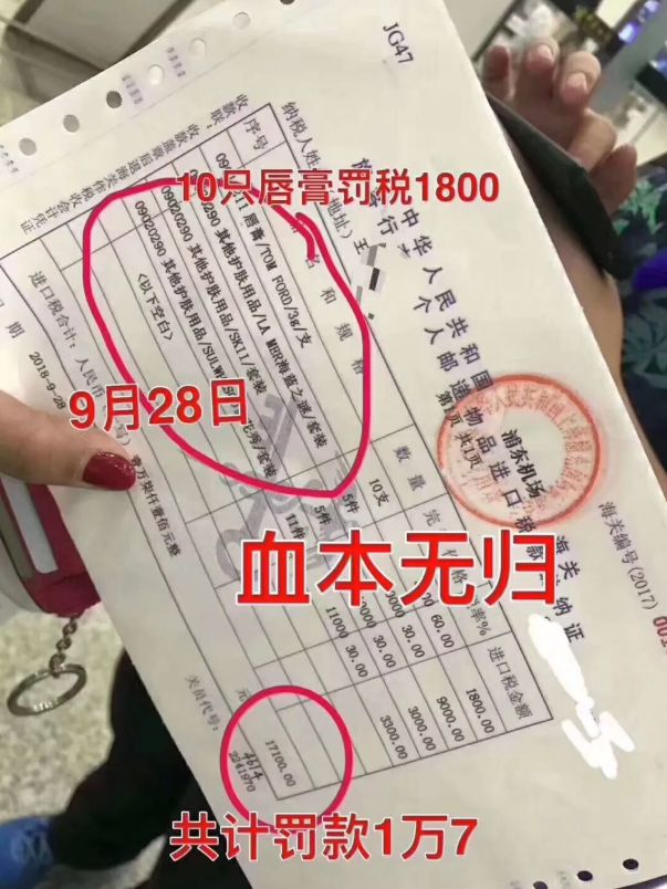 “10只唇膏要罰1800塊,總共罰了17000塊”