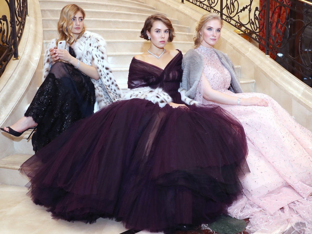 當地時間2018年10月23日,俄羅斯莫斯科,2018“Tatler”國際名媛舞會(Debutante Ball),在莫斯科聯盟議院大廳舉行,眾名媛身穿拖地長裙出席爭妍斗艷。 (圖源:VCG)