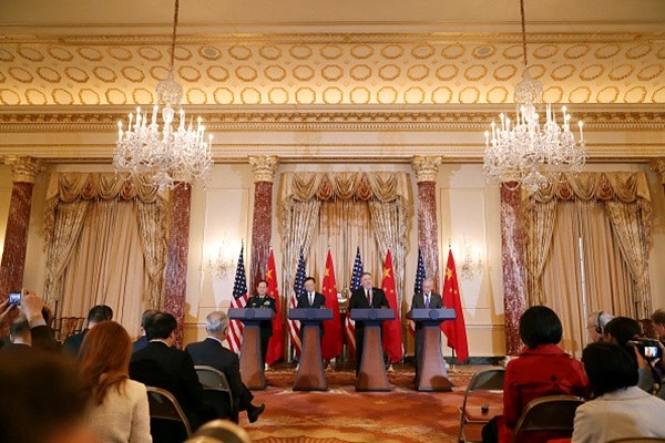 雙方在中美第贰輪外交安全對話上針鋒相對,美國日前發布聲明,首次要求中方撤除南沙群島的導彈。 (Chip Somodevilla/Getty Images)