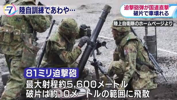 據NHK介紹,大阪和泉市的陸上自衛隊信太山駐屯地所屬第37普通科聯隊,14日在饗庭野(あいばの)演習場進行射擊訓練時,有迫擊炮彈誤射到場外附近公路,炮彈擊中地面迸射的碎片擊中了附近停靠車輛。
