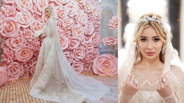 22歲的艾娜(Ayna Dzabrailova)是油王扎布洛夫(Umar Dzabrailov)的姪女,她周末嫁给26歲車臣油公司經理謝裡波夫(Haidar Sheripov),兩件婚紗分別由兩名黎巴嫩著名設計師穆拉德(Zuhair Murad)以及紅地毯寵兒Elie Saab設計。在婚禮前,新娘子就與媽媽在米蘭、巴黎及杜拜采購結婚用品,婚體當天她配戴著英國珠寶商Graff Diamonds設計的鑽飾,以及壹個在杜拜打造的冠冕,貴氣拾足。