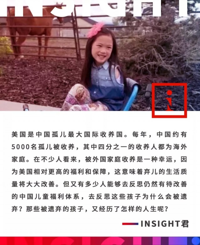 和Morgan Hurd壹樣,在美國大約生活著拾萬名被中國家庭遺棄的孩童,他們有的因為身體和智力上的先天殘疾而被遺棄,有的則僅僅是因為性別的緣故。