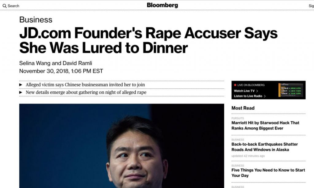 11月30日, 彭博社發表文章稱,劉強東案受害者是被騙去參加當晚飯局的,該報道還曝出了另壹位涉案商人。