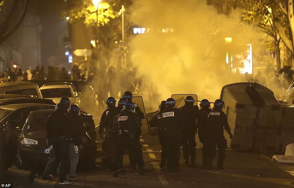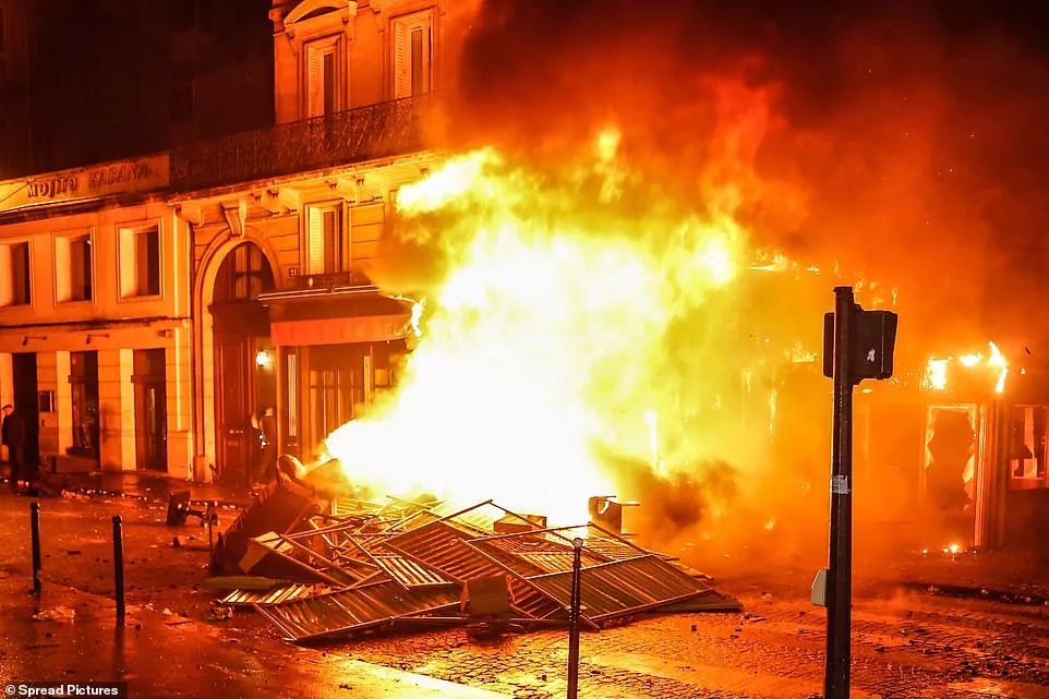 要不是抗议者手中挥舞的法国国旗以及在浓烟中依稀可见的标志性建筑物凯旋门,完全难以置信图中这个一片狼藉的城市就是向来以浪漫和文化着称的巴黎...