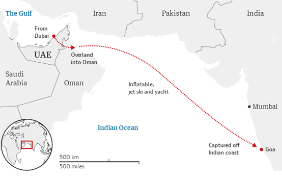 據英國衛報網報道,近日,拉蒂法朋友表示公主失蹤了,最後壹次得到她的消息,是得知她的游艇在印度外海30公裡處,遭3艘印度軍艦和2艘阿聯酋軍艦攔截。
