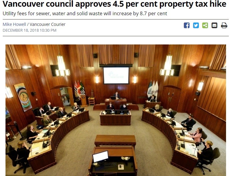 (加西網綜合)昨天(12月18日)晚上10點,溫哥華市議會通過了房產稅上調等壹系列預算。