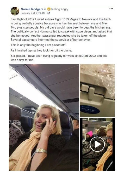 並且打電話反復侮辱身旁的乘客(Rodgers and her partner Mac)超重的身材和尺寸。