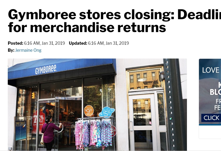 Gymboree宣布關閉加拿大和美國的共900家實體店!