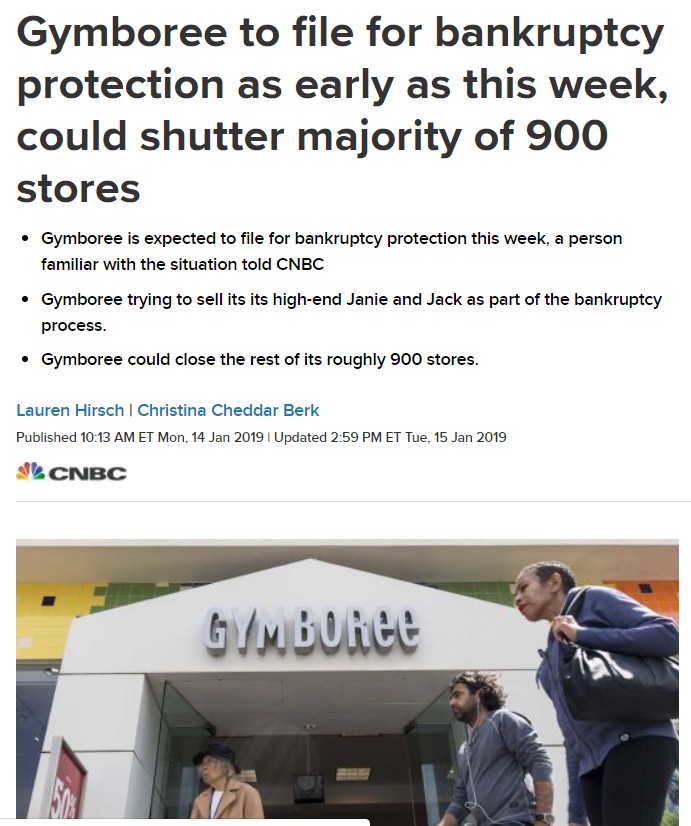 如今該公司的加拿大分公司Gymboree Inc.也打算尋求破產保護。