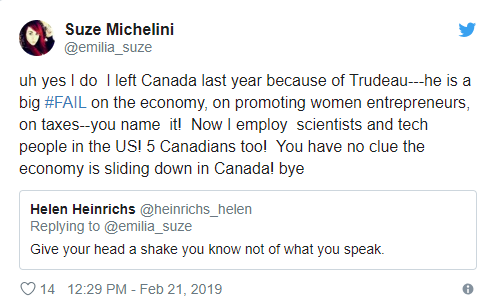 Suze Michelini:因為杜魯多,我去年就離開了加拿大。經濟、推動婦女企業家、稅收,他全都不及格。