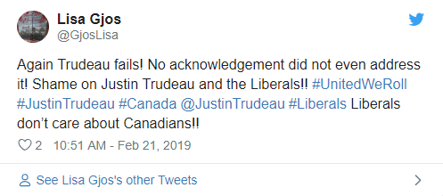 Lisa Gjos:不解決,不承認。無恥的杜魯多和自由黨人!自由黨並不關心加拿大人!