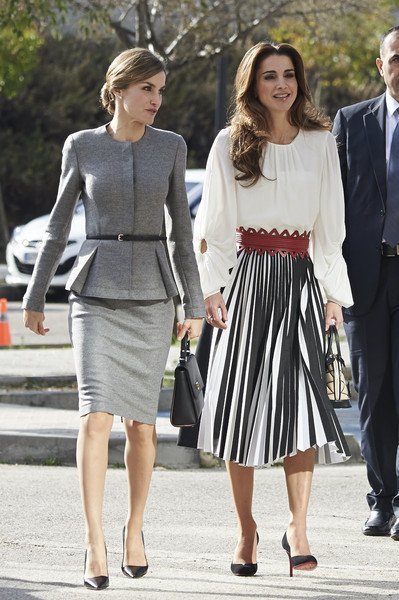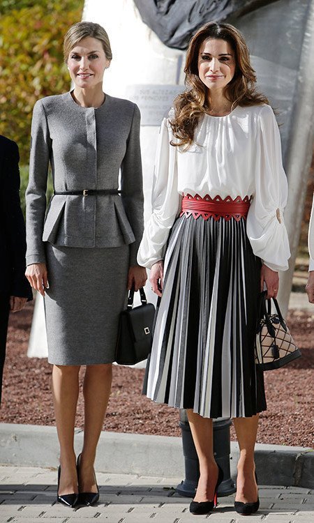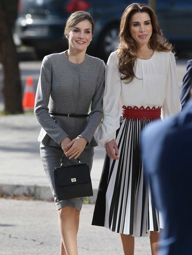 前幾天,約旦國王和約旦王後訪問法國,和法國第壹夫人同框,我壹下子就被約旦王後拉尼婭的美折服了!此前拉尼婭被評為是世界拾大最美王妃之壹,看到她的氣質和氣場,我才發現原來這才是真正的高貴范兒!拉尼婭其實和西班牙王後有幾分相似,而兩人也是不止壹次同框,那麼同樣都是氣質絕佳的兩位王後同框,總要比美壹番啊!